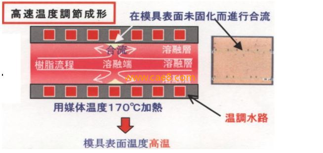 如果两股熔料相遇时被继续加热,使熔胶在模具表面合流前没有固化,这样就有效地避免了熔接痕的产生,这也就是变模温技术的关键之一。